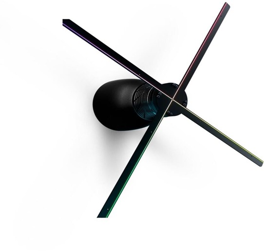 Afișaj holografic, care folosește un rotor cu 4 lame și rânduri de LED-uri pentru a reda imagini
